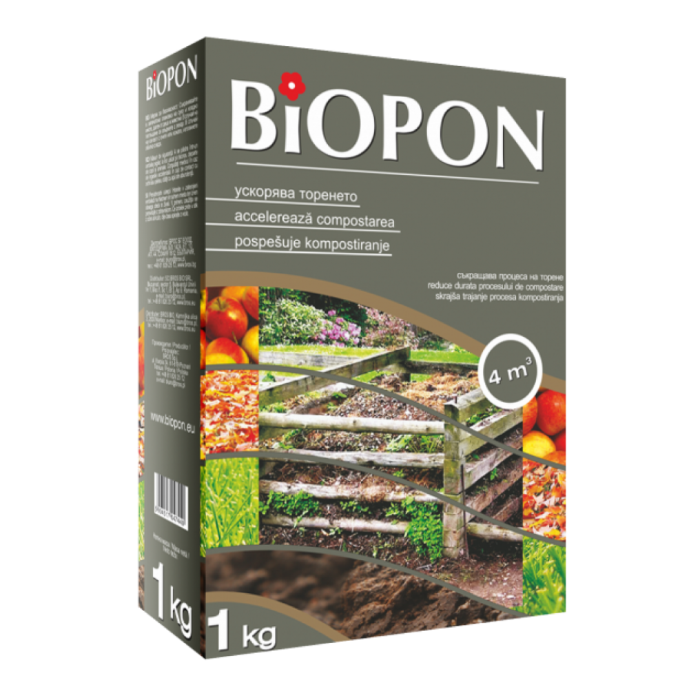 Biopon Compost este ceea ce ramane dupa descompunerea plantelor si a altor organsme vii. Se prezinta sub forma unei substante inchisa la culoare, sfaramicioasa si de consistenta pamantului. Este un fertilizant excelent pentru plantele din jurul casei si pentru pamantul din gradina.