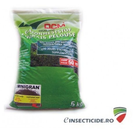 Recomandam folosirea ingrasamantului organic granulat (sistemul MINIGRAN®) pentru amenajarea si intretinerea tuturor tipurilor de gazon. Acest ingrasamant ofera un aport mineral cu descarcare lenta pe o perioada de 100 de zile, fiind ideal pentru fertilizarea de baza, corectare si intretinere a peluzei pe tot parcursul anului. Prin actiunea sa delicata, asigura o crestere ferma a ierbii, cu radacini puternice si o nuanta verde inchisa.